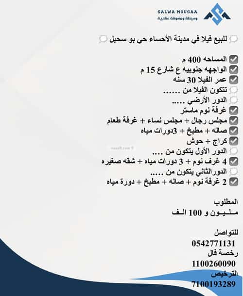 فلل للبيع في حي بلدة الجشة بالأحساء، اكتشف مجموعة مميزة من الفلل المعروضة للبيع. تصفح الخريطة واطلع على الصور والتفاصيل لاختيار العقار المثالي الذي يناسب احتياجاتك.