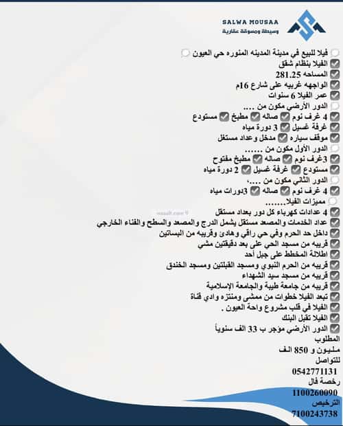 فلل للبيع في حي العيون بالمدينة المنورة ✓ فلل تمليك بالتقسيط والكاش ✓ فلل تمليك في حي العيون✓ ابحث بالخريطة او بالصور✓ فلل للبيع بالتقسيط ✓ تمويل عقاري مميز