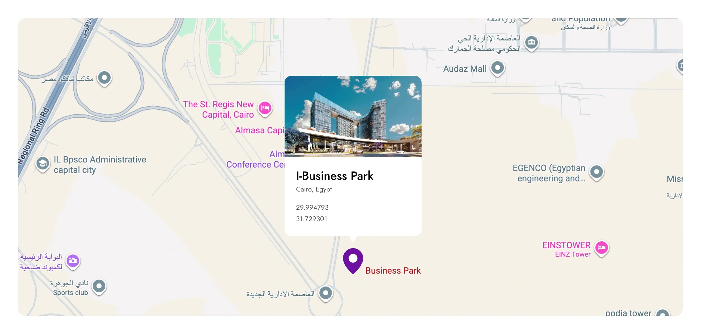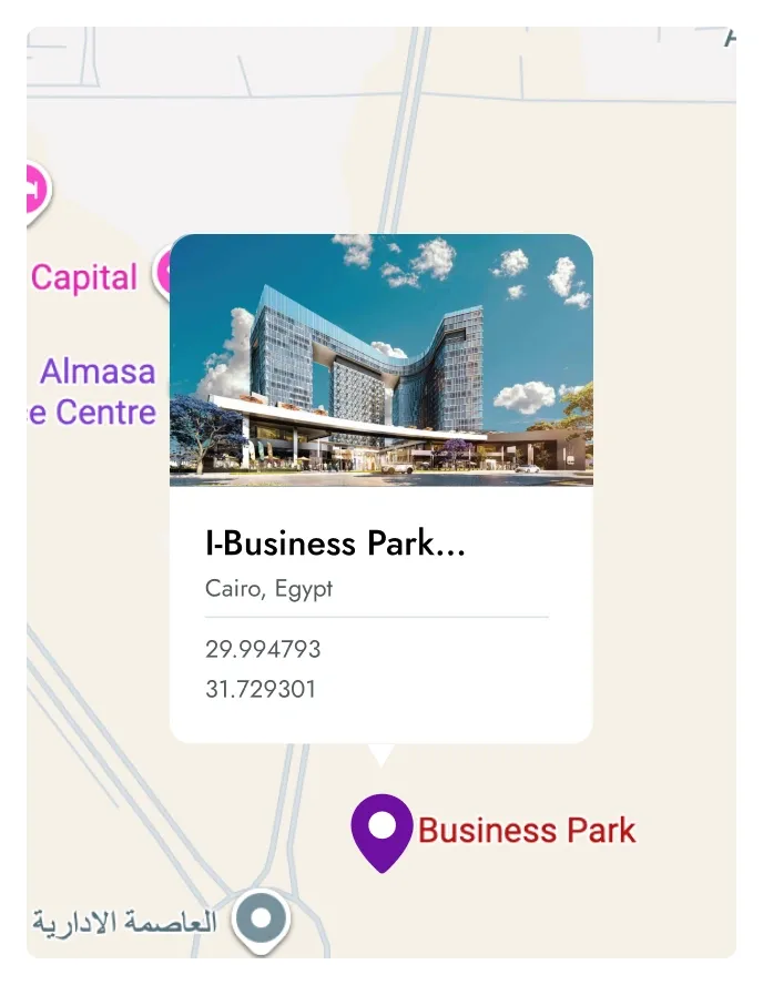 Cairo, EgyptOur brand name is defining the identity of our project. The highlighted in"I-Business Park" refers to the technology, smart buildings, number one in the Latin language, Innovation, investment, internationalization, and finally, I -the investor- own an investment unit in an innovative smart building with international standards