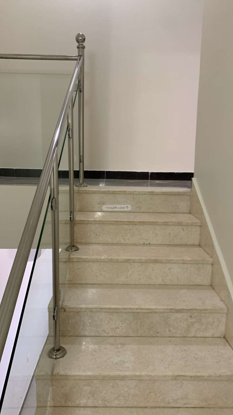 Two-story apartment. Internal staircase. Five bedrooms upstairs, including a master bedroom. Downstairs: living room, bedroom, lounge, and kitchen. Split air conditioners. Apartment located on the first floor. Close to Anas and Abu Bakr Road. Close to the mosque. Owners' association. Security deposit 2000. Office fees.