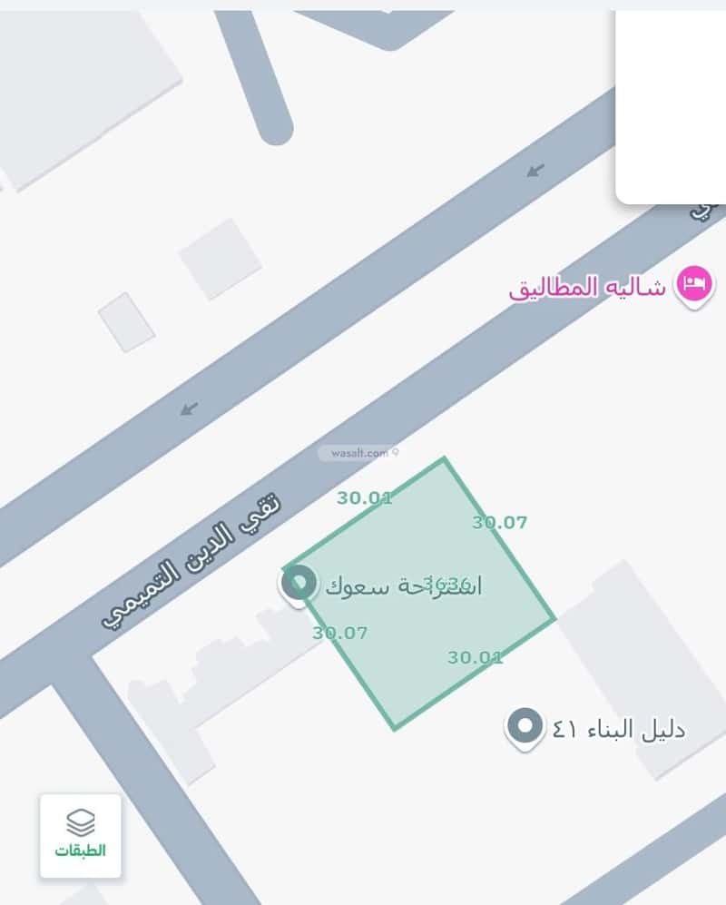 يحدها 1 شارع: شمالية٬ بعرض 40 م