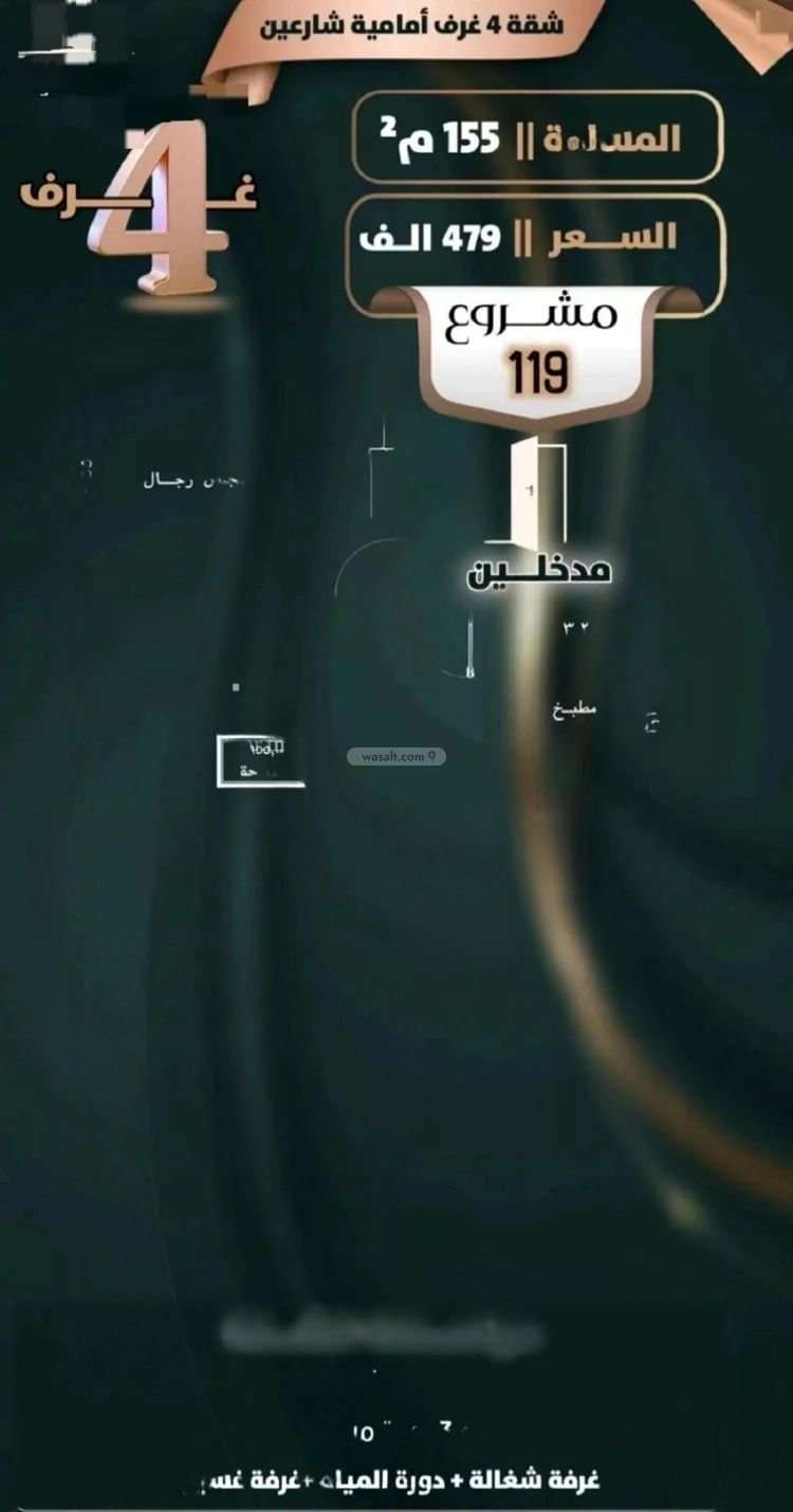 🏠 شقة 4غرف(امامية شارعين)، مساحة 155م، بسعر479,000.