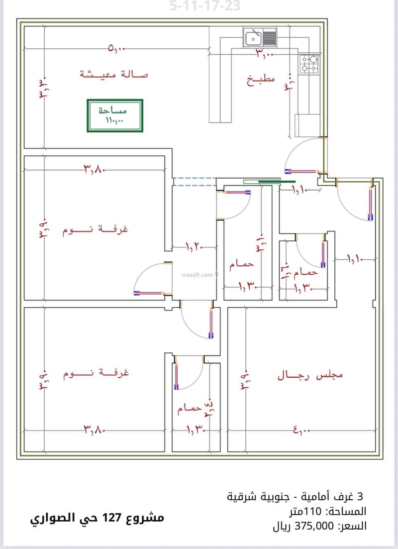 5غرف مدخلين 4دورات مياه غرفة خادمة غرفة ملابس غرفة سائق المساحه 222م السعر 630الف