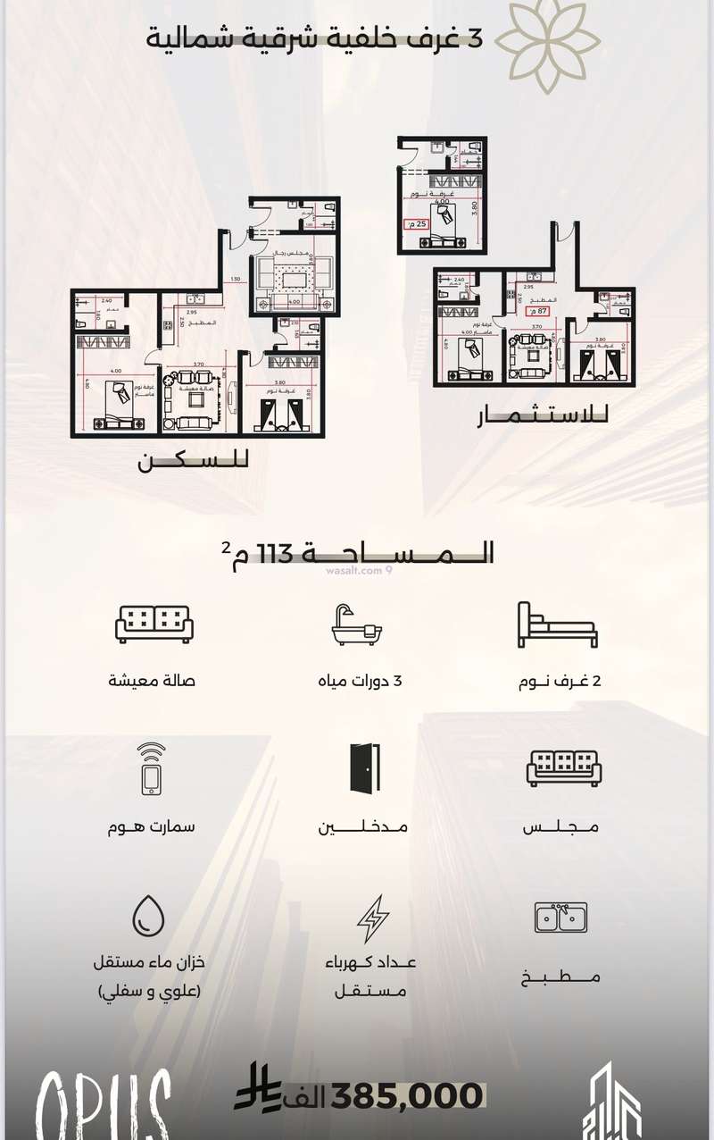 ▪️ شقة 3 غرف (خلفية) – 113م²