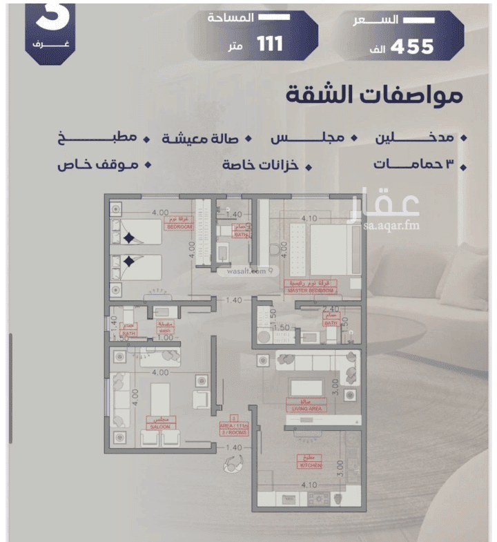 مكونة من: 3 غرف