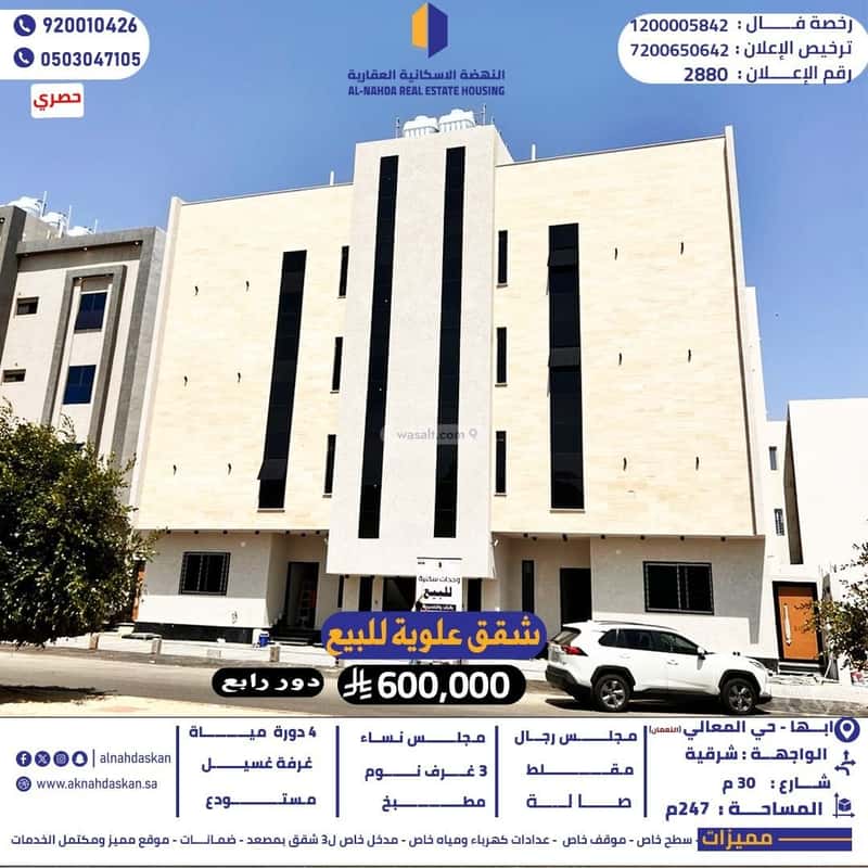 شقق علوية (دور رابع ) للبيع أبها بحي المعالي (النعمان)