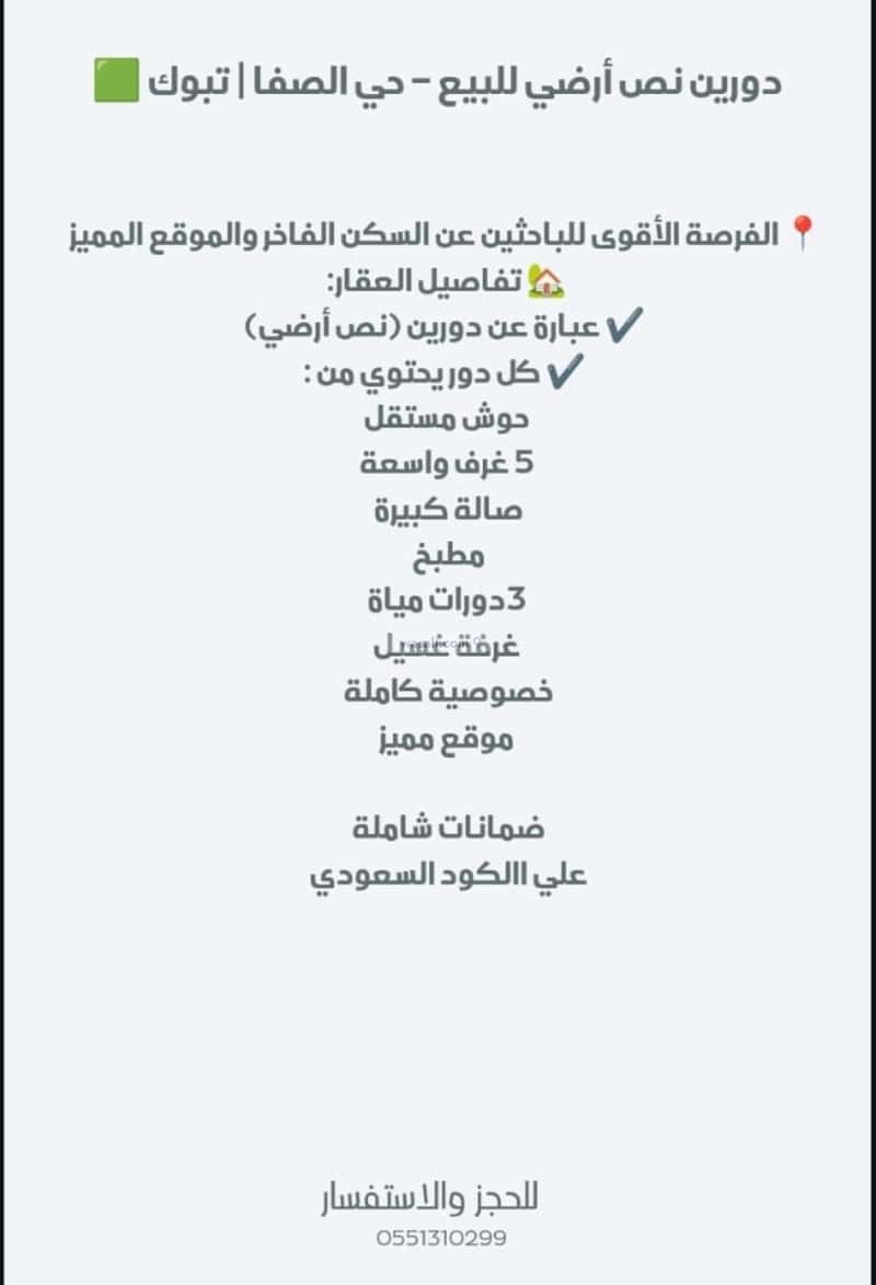 MaximumUn-Furnished Floor for Sale in Al Safa, Tabuk