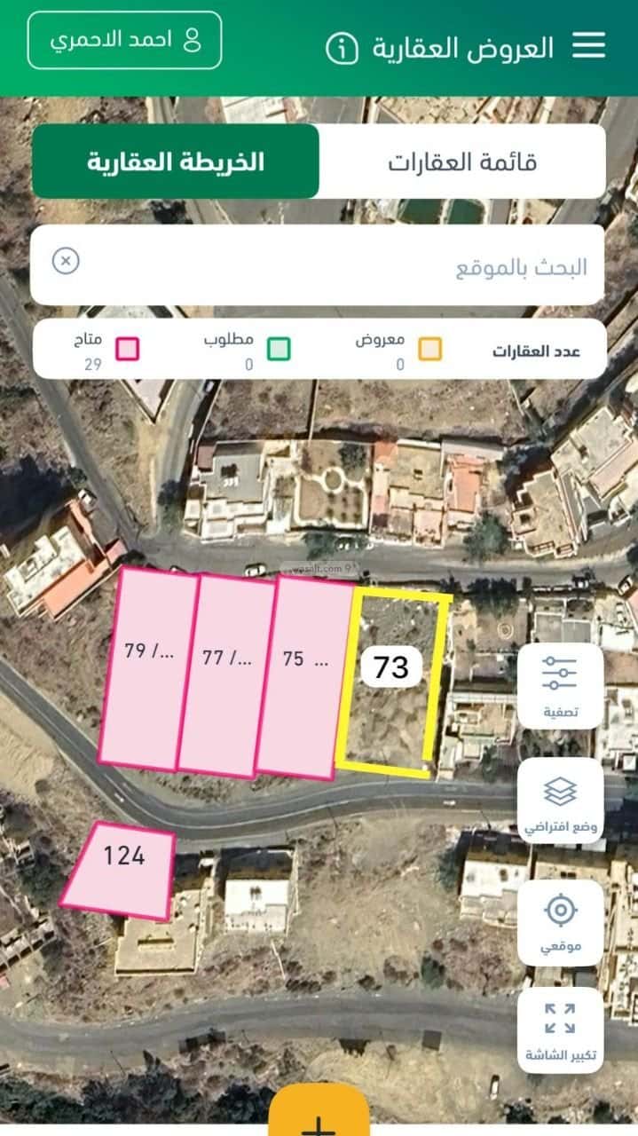 ٣- ويحدها شملا شارع ١٥ متر و الأراضي العلوية مطله على مدينة أبها كاملة .