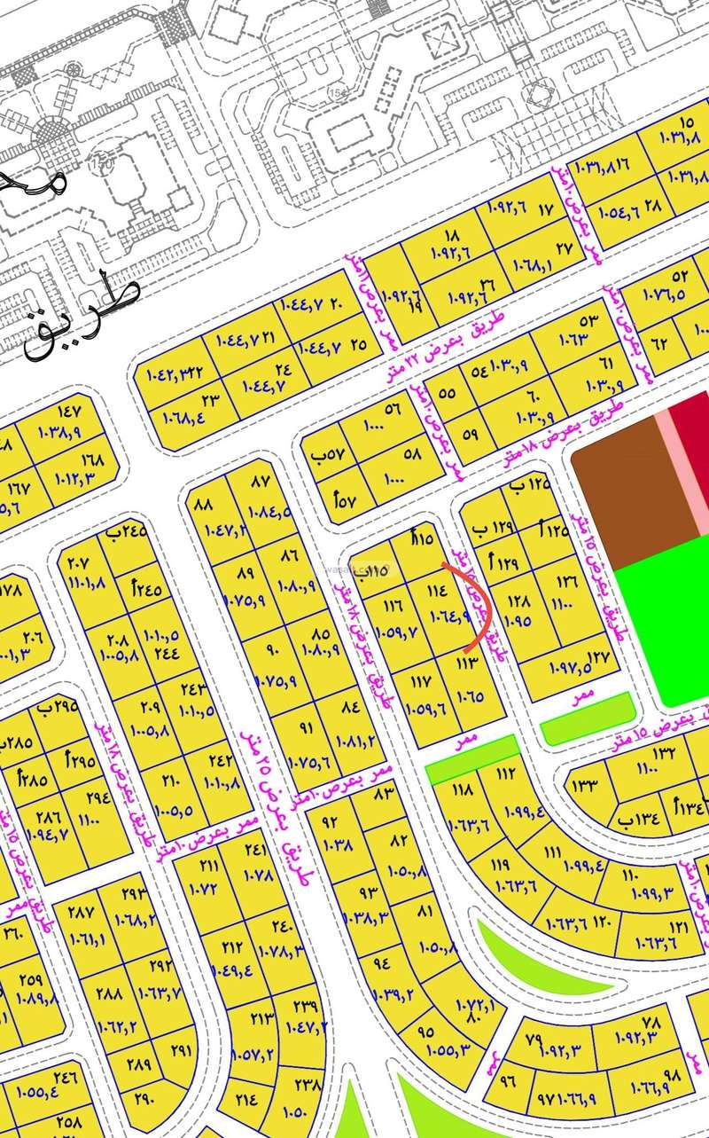 جنوباً : قطعة رقم ١١٣ بطول ٢٥ م