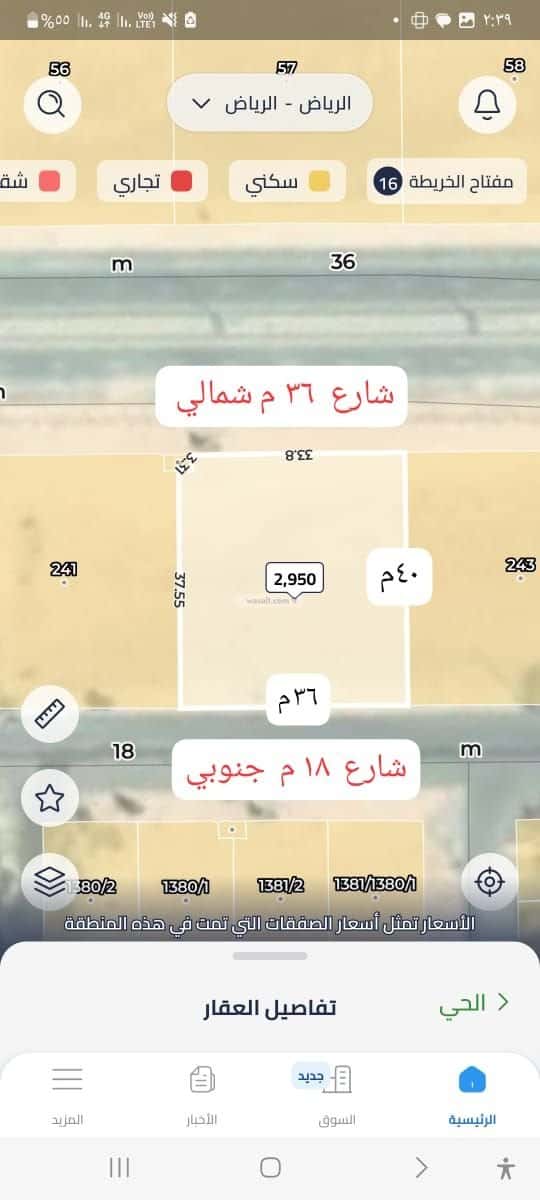 للبيــــــــع قطعة أرض تجارية سكنية بحي الرمال ( مخطط تنال )