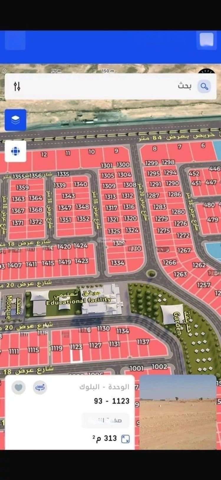 Land is located on 1 street, South with 18 m width