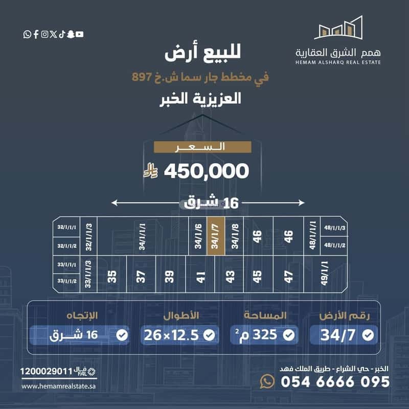 🔹 للبيع نص أرض بمخطط جار سما – العزيزية الخبر (ش خ 897)