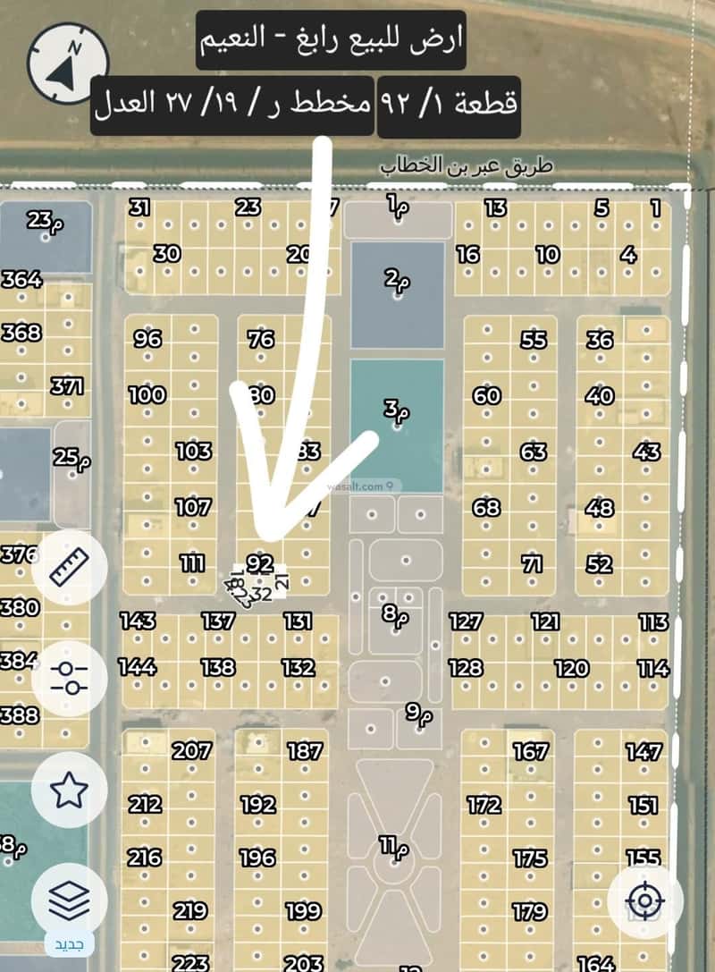 قطعة رقم ( ١/ ٩٢ ) مخطط ر / ١٩ / ٢٧ العدل