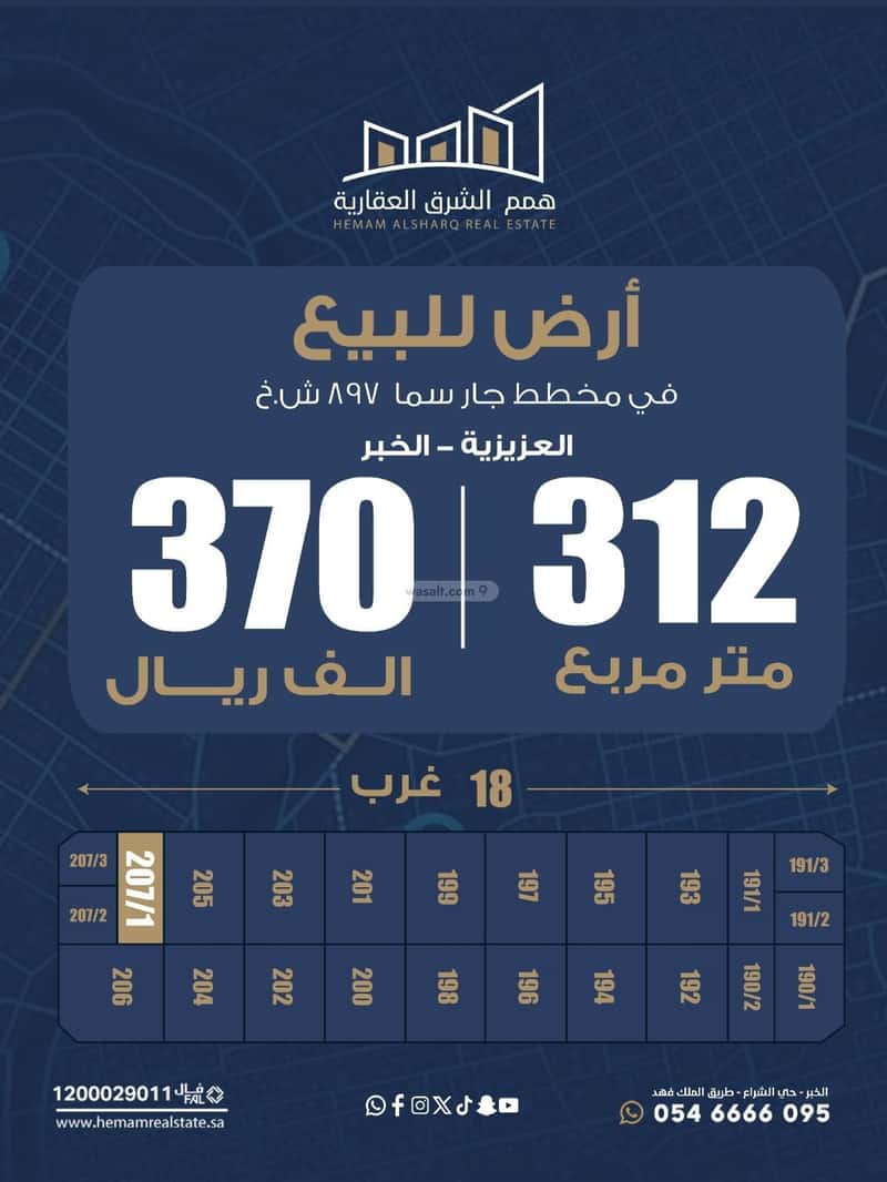 🏡 للبيع نصف أرض – مخطط جار سما (ش خ 897) – العزيزية الخبر