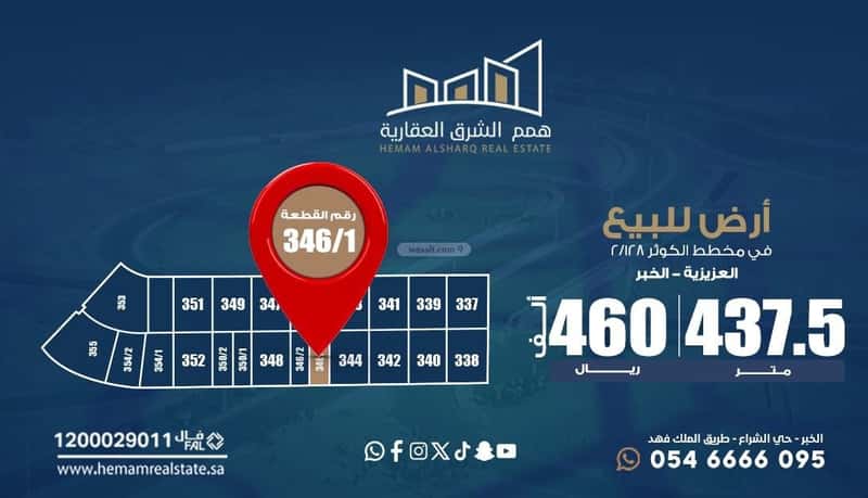 فرصة استثمارية وسكنية واعدة في أحد أفضل مواقع مدينة الخبر — لا تفوّت الفرصة!