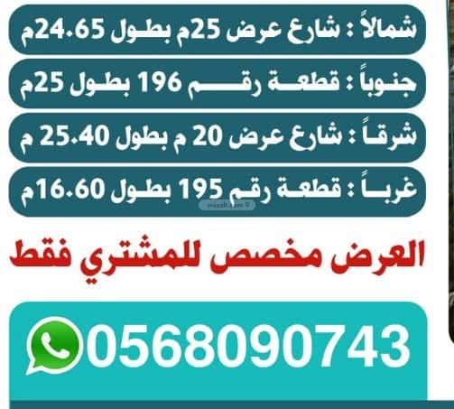 • شارع عرض 20 متر بطول 25 متر (شرقي)
