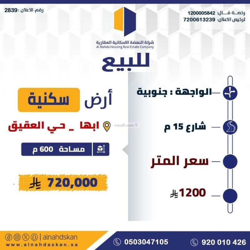 ارض سكنية للبيع ابها حي العقيق
