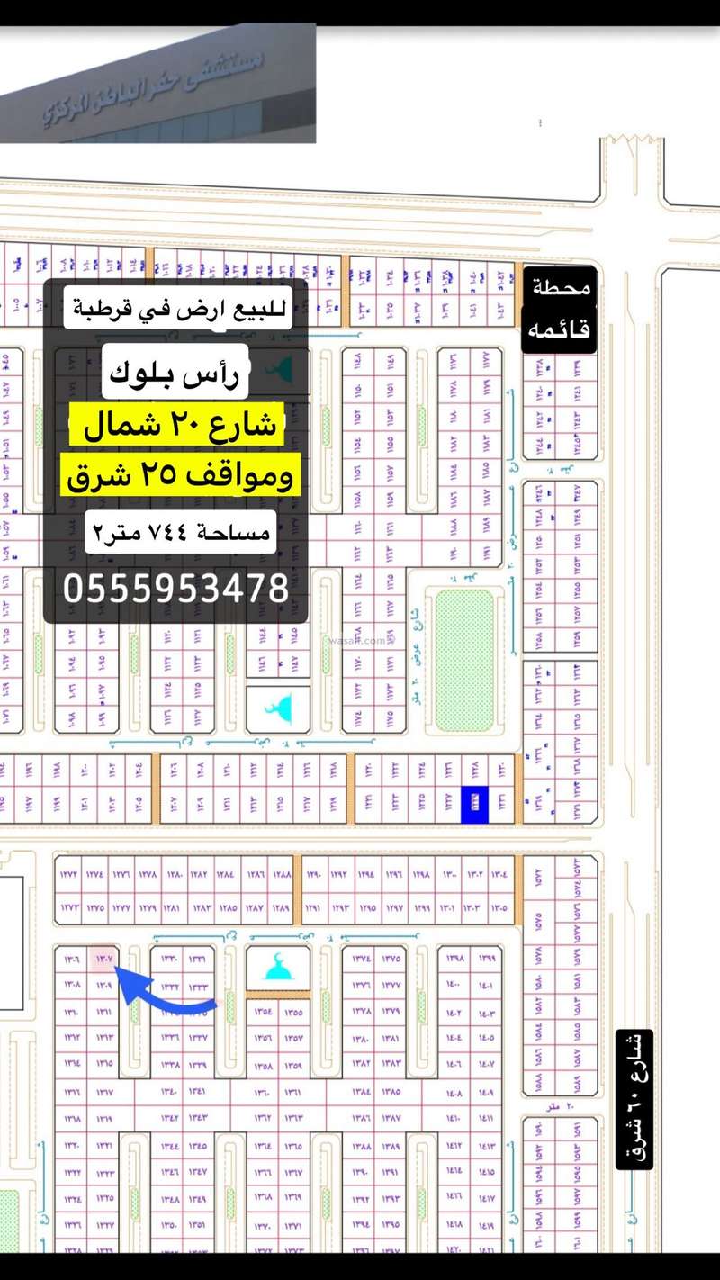 للبيع ارض راس شرقية شمالية في قرطبة(دله سابقاً) بمساحة٧٤٤متر مربع موقع مميز بالقرب من الخدمات بالمخطط
