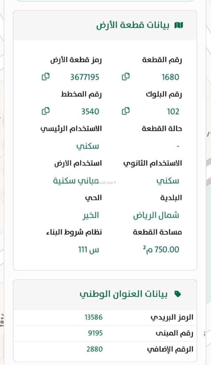 شمالاً : القطعة رقم 1678 بطول 30م