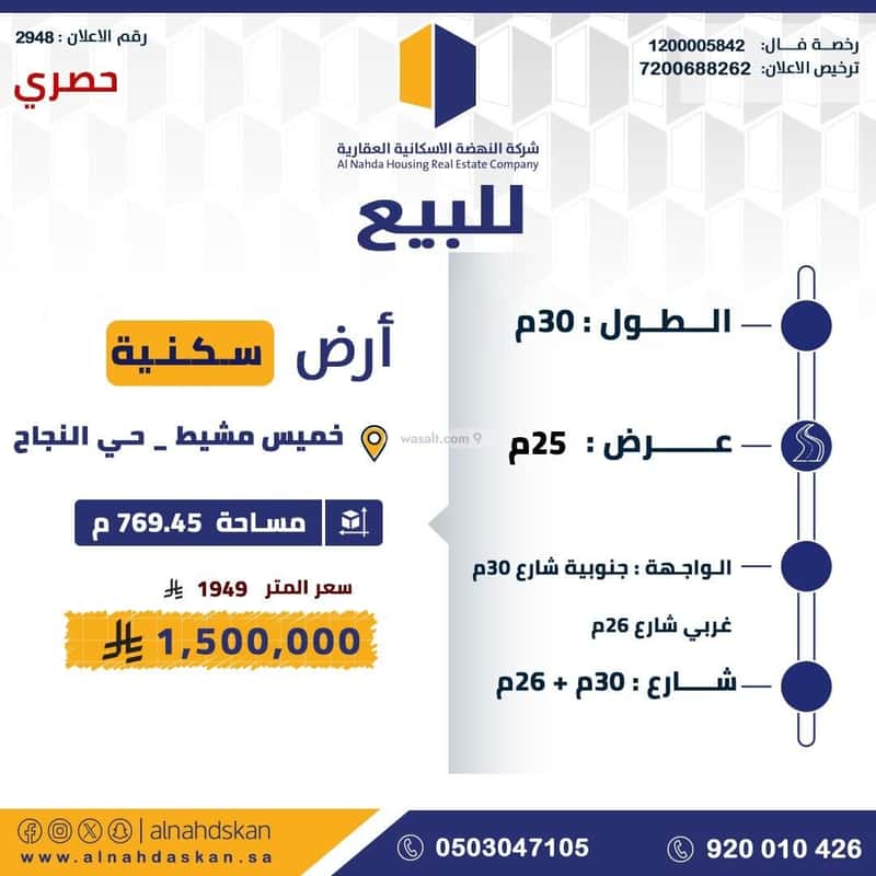 ارض سكنية للبيع خميس مشيط حي النجاح