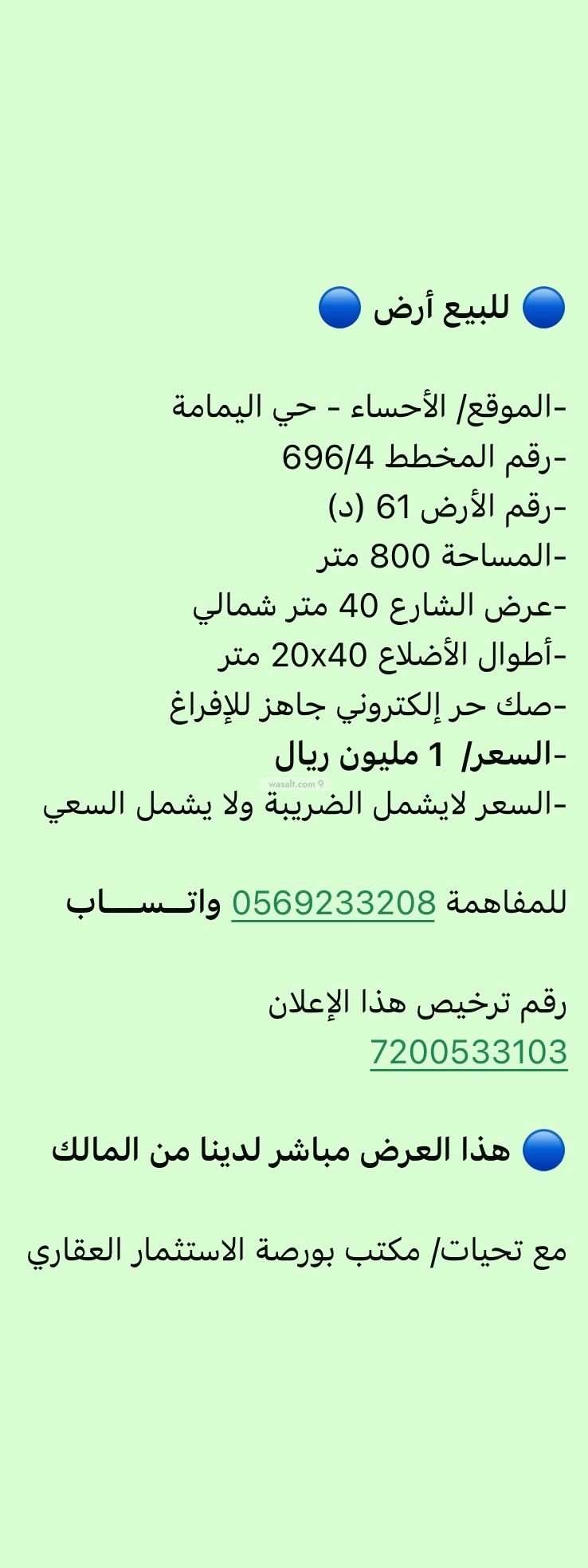🔵 *هذا العرض مباشر لدينا من المالك*