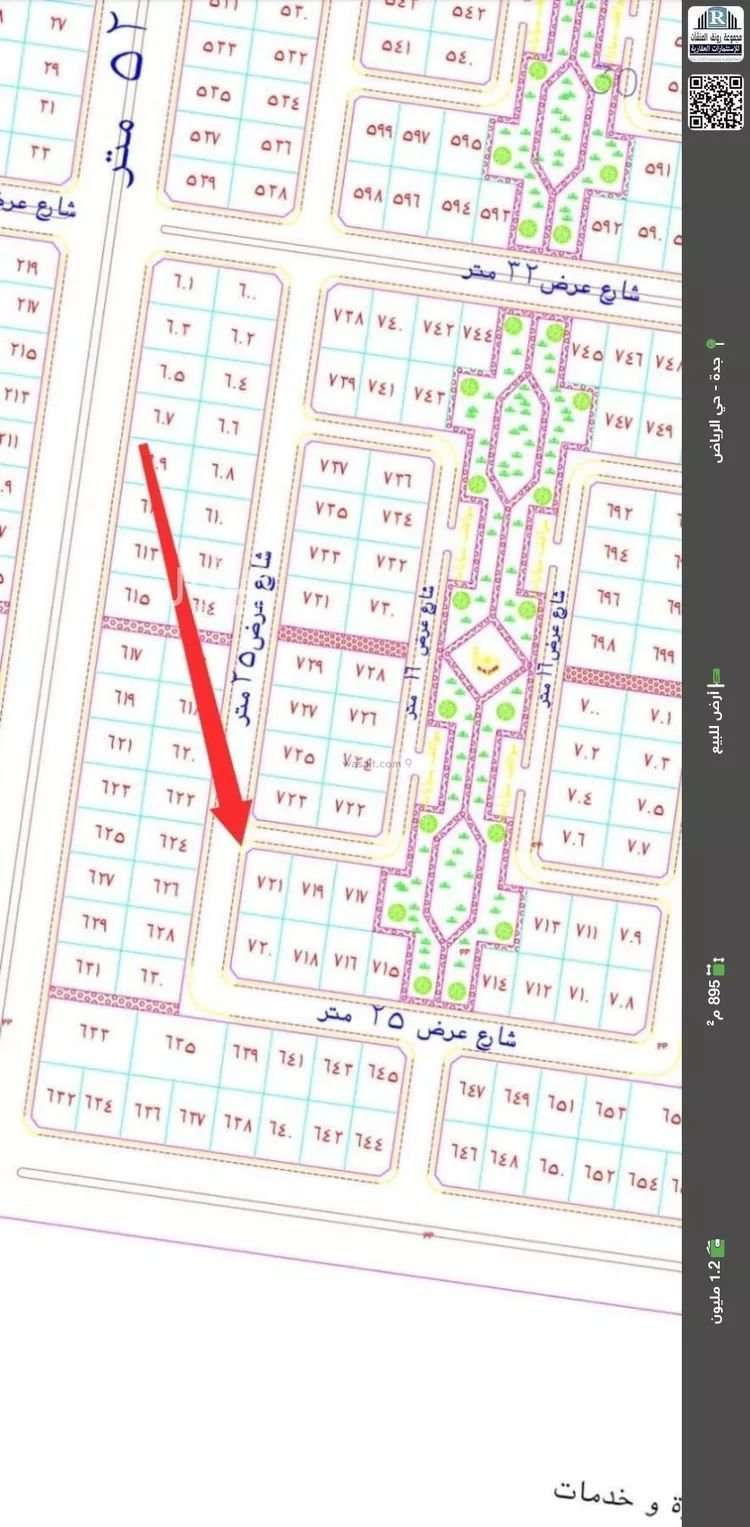 Land is located on 1 street, North West with 25 m width