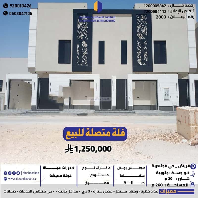 Maximumفلة متصلة للبيع الرياض حي الجنادرية