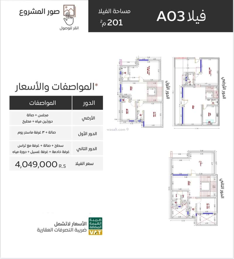فيلا 3 مساحة ٢٠١ متر سعر 4,049,000