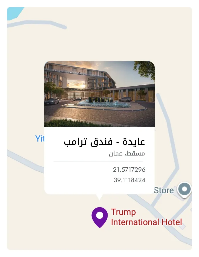 عايدة - فندق ترامبيمنحك امتلاك غرفة في فندق ترامب موقعًا في قلب الفخامة والتميّز، مع إدارة احترافية تضمن لك راحة الاستثمار وأمانه. يضم فندق ترامب إنترناشونال – عُمان – فندقًا فاخرًا، وأجنحة معلّقة بإطلالات خلابة، وإقامات مفروشة، وملعب جولف بمواصفات عالمية، وناديًا خاصًا للأعضاء . تلتزم فنادق ترامب بتقديم خدمات وتجارب استثنائية لا تضاهى، لتجعل الإقامة فيها عنوانًا للتفرّد والرقي. وإلى جانب قيمة الاستثمار الفاخر، يحظى المالك بامتياز حصري للاستمتاع بإقامته الشخصية لمدة أسبوعين سنويًا
