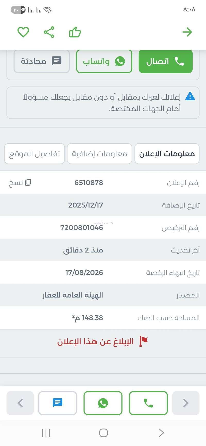 معلومات رخصة الإعلان