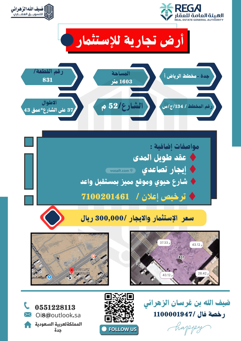 •الموقع مناسب للاستثمار وبمستقبل واعد