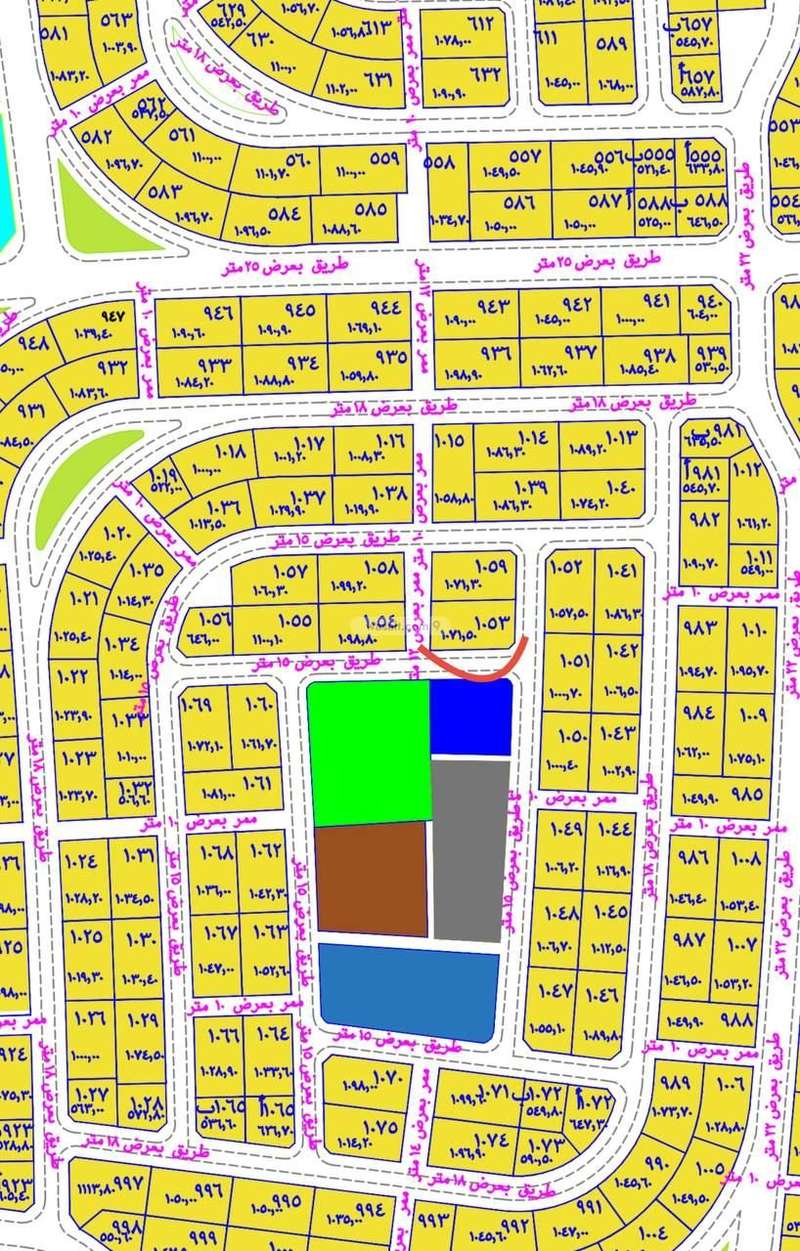غرباً: ممر عرض ١٢ م بطول ٢٥ م