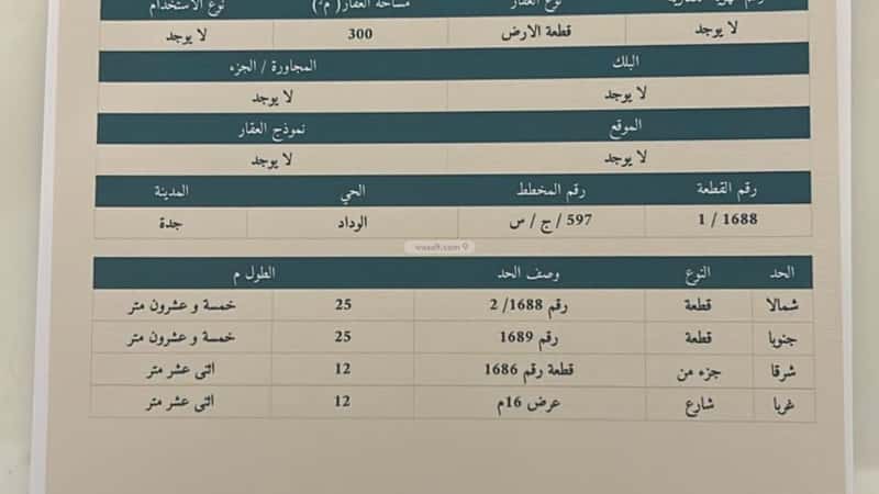 يحدها 1 شارع: غربية٬ بعرض 16 م