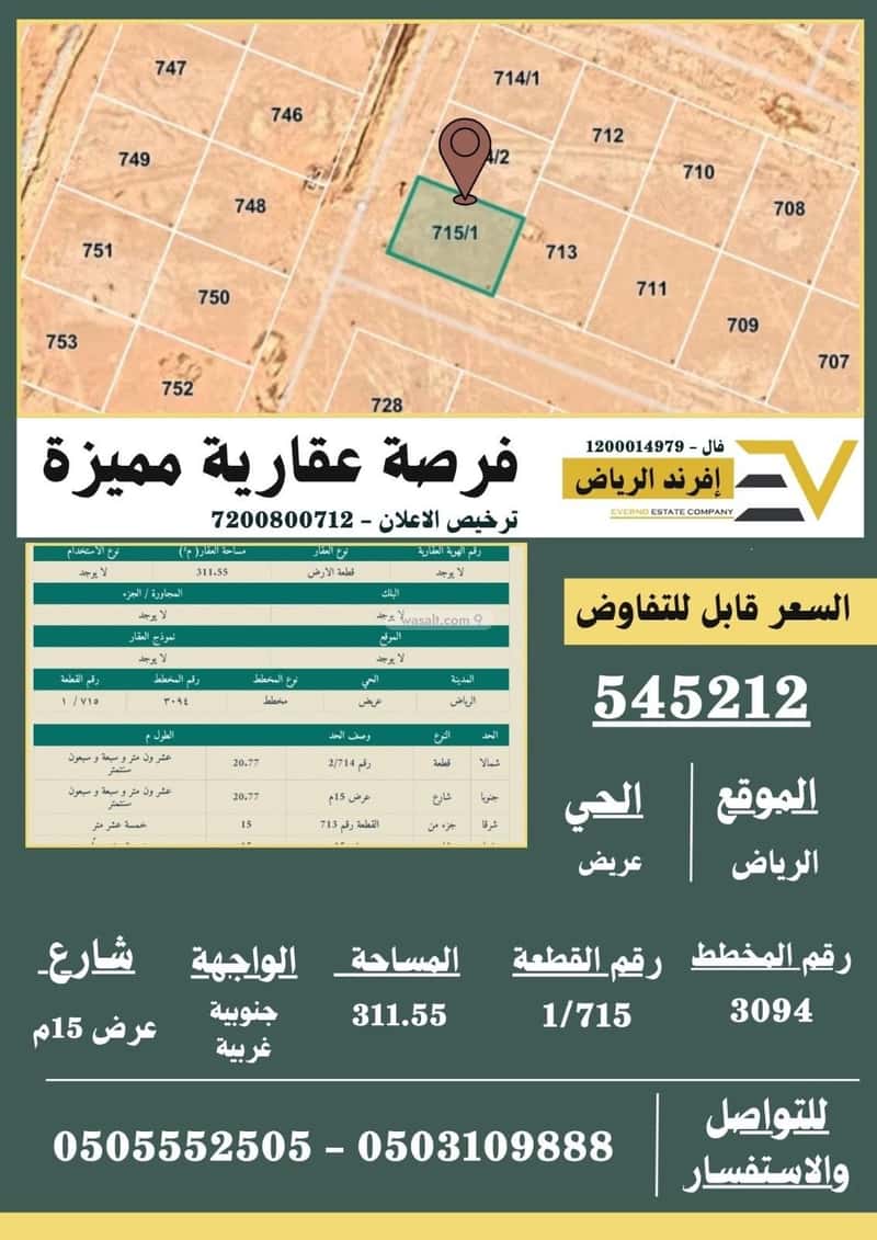 يحدها 1 شارع: جنوبية٬ بعرض 15 م