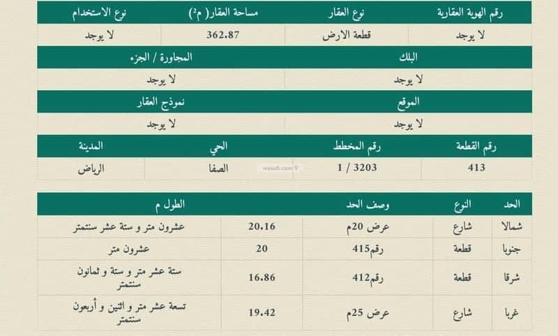 أرض 362.87 متر مربع شمالية على شارع 20م