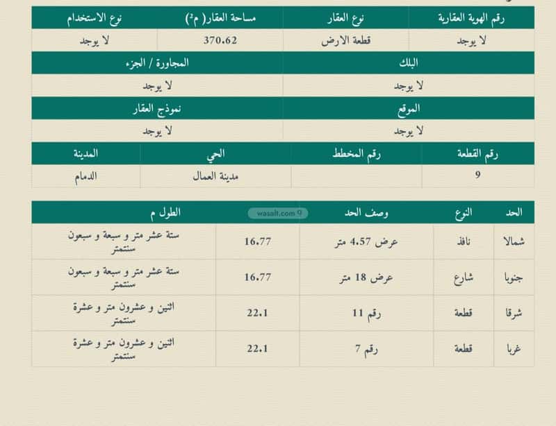أرض 370.62 متر مربع جنوبية على شارع 12م