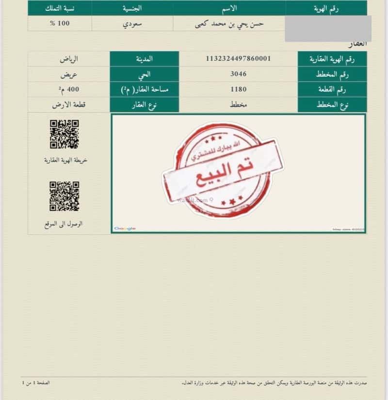 مساحة الأرض 400 متر مربع