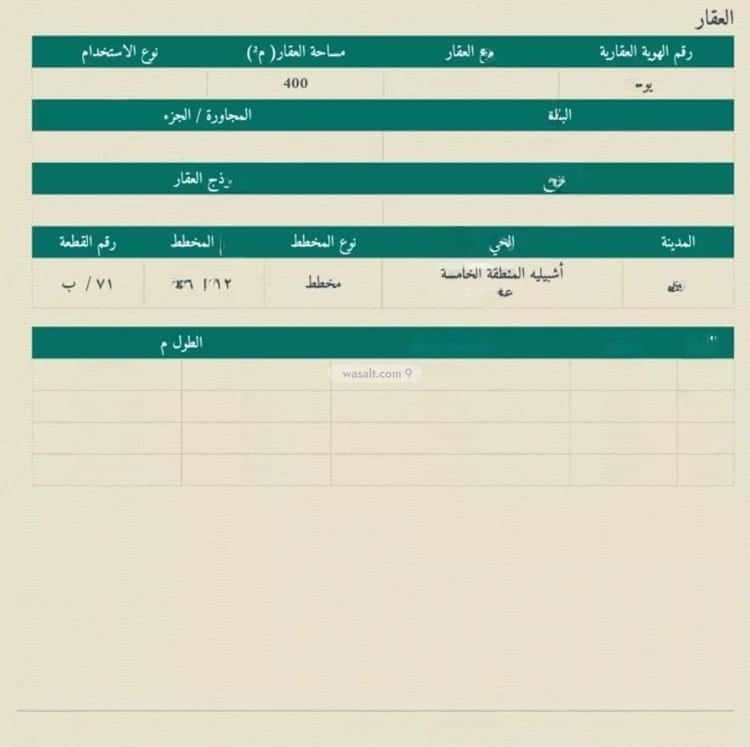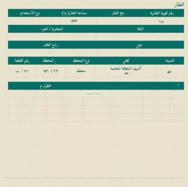 مساحة الأرض 400 متر مربع