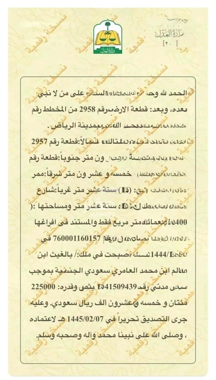 يحدها 1 شارع: شرقية٬ بعرض 15 م