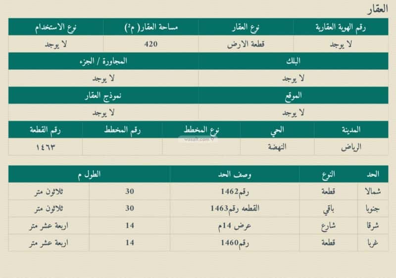 مساحة الارض : 420 م