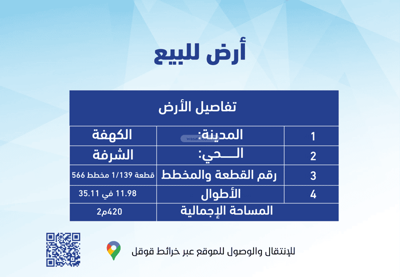 مساحة الأرض 420 متر مربع