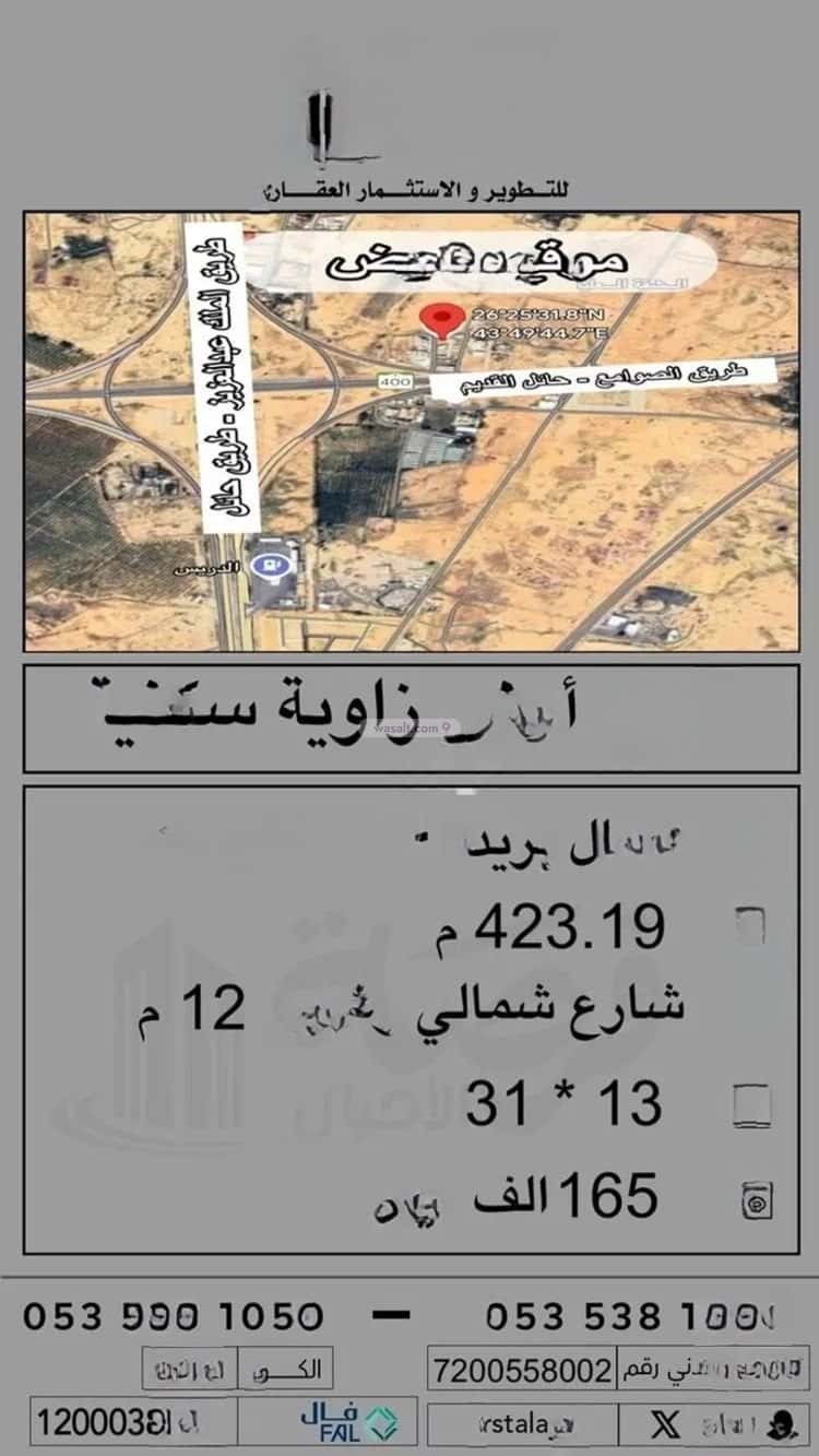 أرض 423.19 متر مربع شمالية غربية على شارع 12م