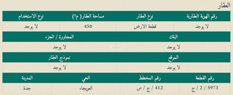 مساحة الأرض 450 متر مربع