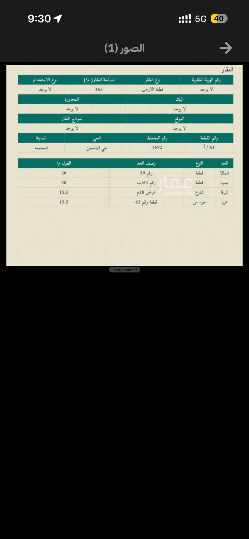 مساحة الأرض 465 متر مربع