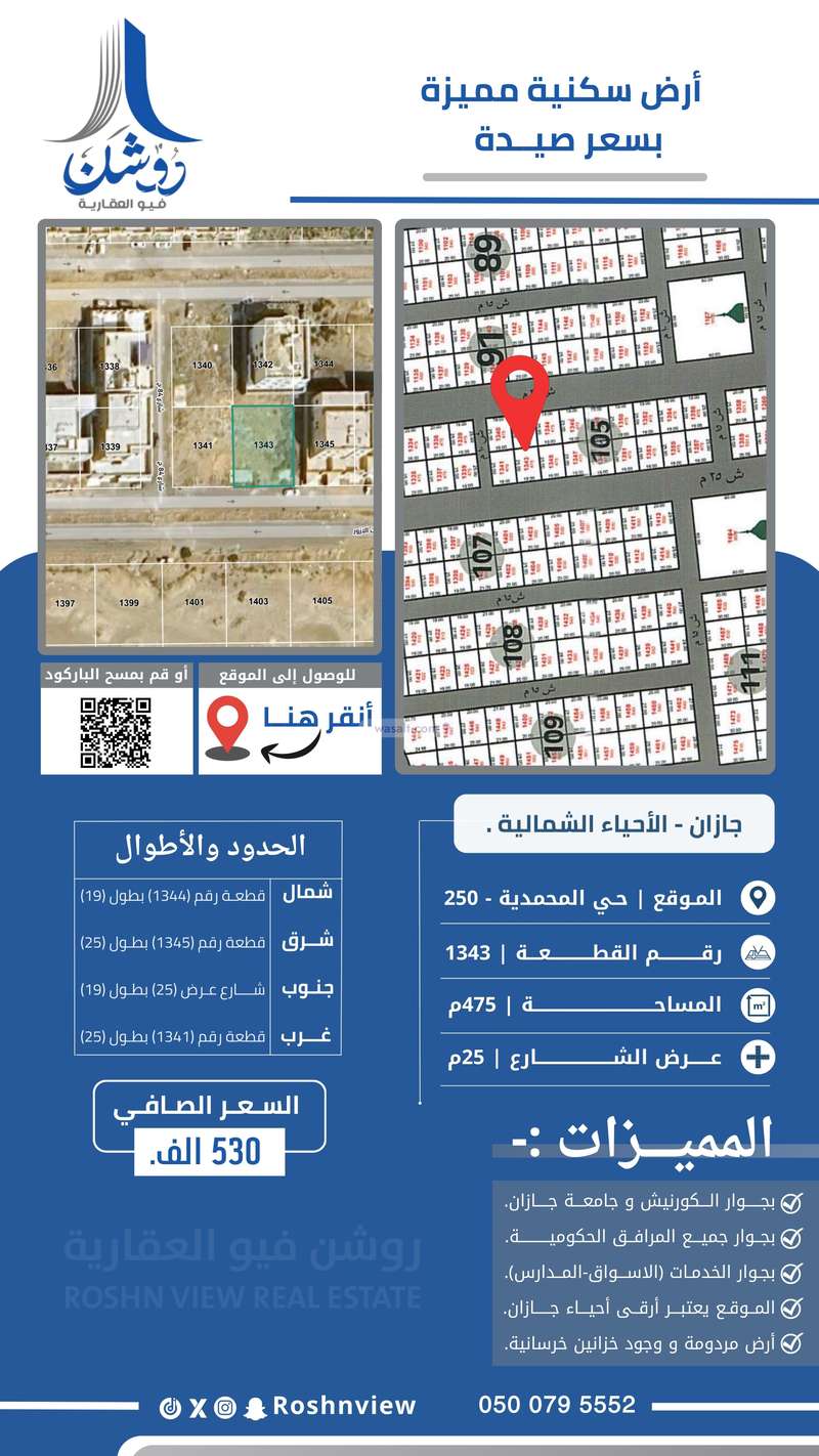 • على شارع بعرض 25م .