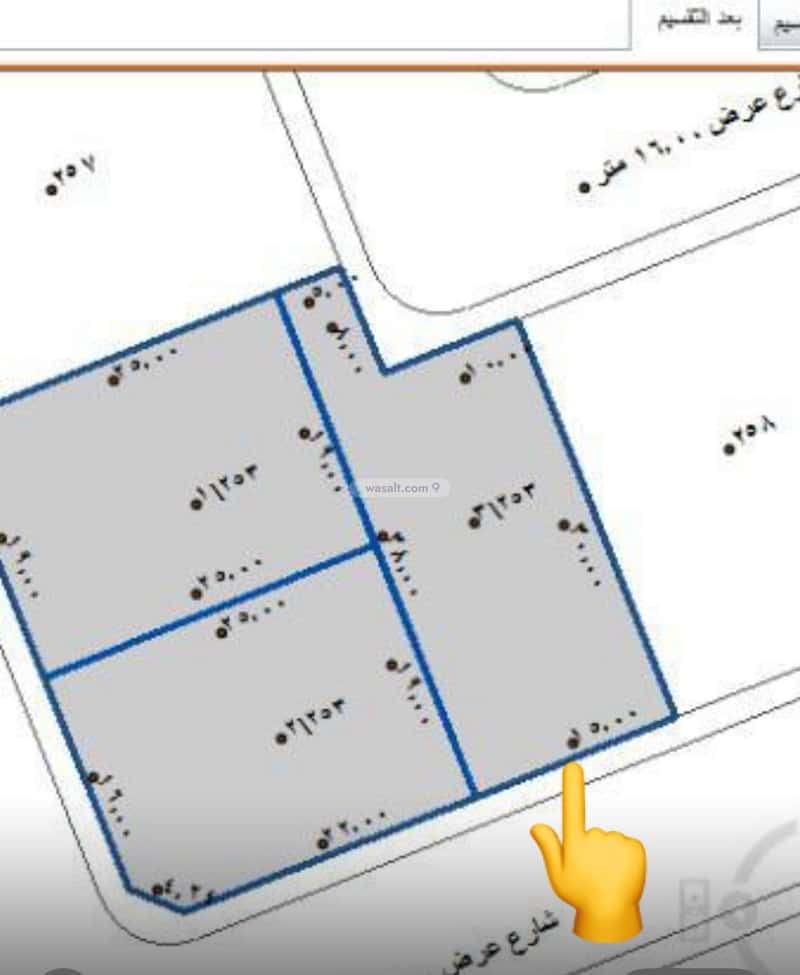 ارض مساحة 490م على شارعين شارعين متظاهره 16 جنوبي شمالي  الاضلاع 15 - 30