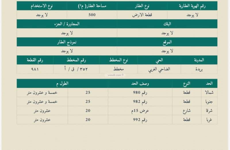 مساحة الأرض 500 متر مربع