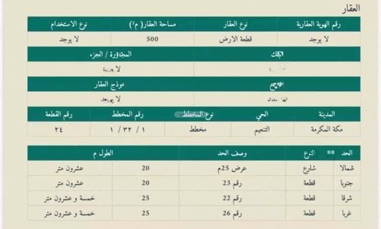 أرض للبيع في حي التنعيم٬ مكة المكرمة