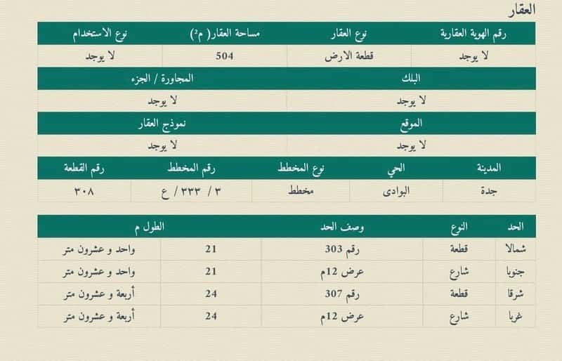 أرض للبيع في جدة – حي البوادي | على شارعين