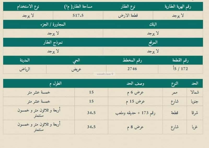 يحدها 1 شارع: ثلاثة شوارع٬ بعرض 15 م